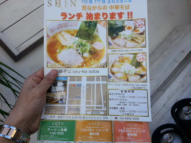 【麺酒家SHIN】第2食 クーポン券 2017/11/24