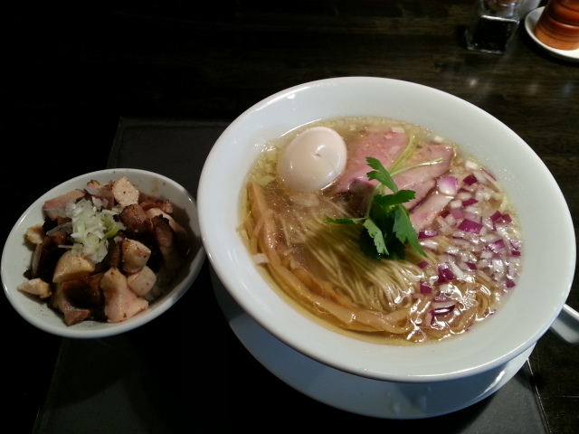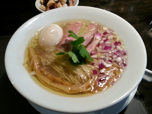 店主から「昨日も来ていただいてますので」と味玉サービス。