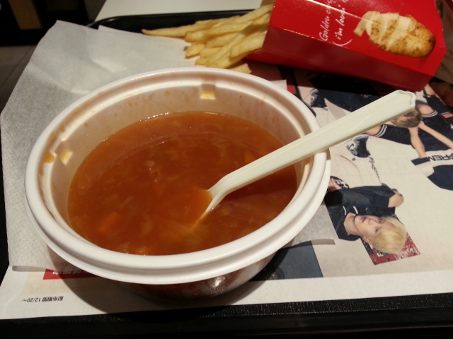 ドリンクを100円追加してミネストローネに変更。