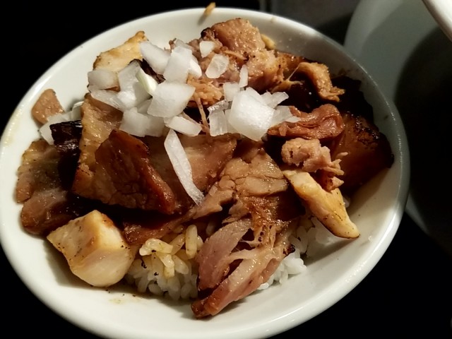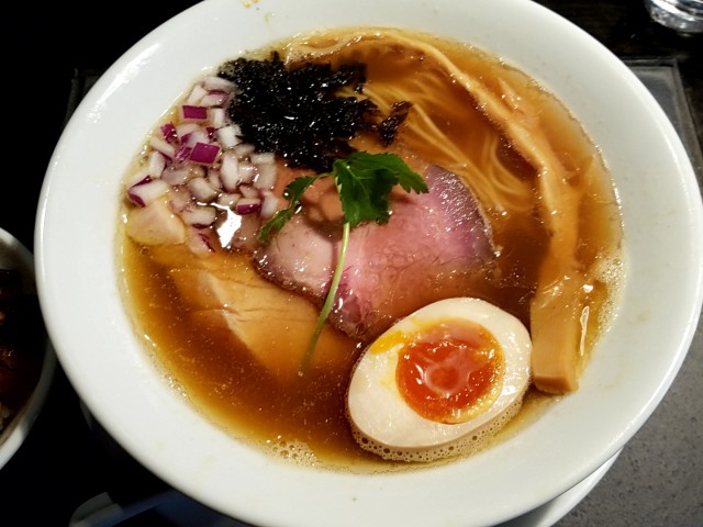 ちょっとがっかりだけど、恒例の端麗煮干しそば780円とランチ肉飯150円を食べた。