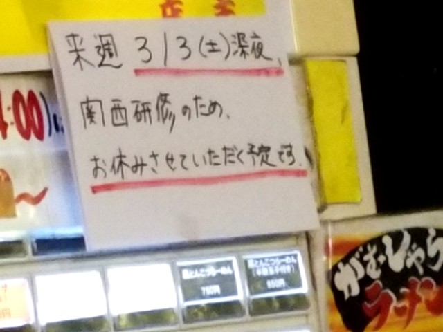 3/3(土)深夜・・・暦日日曜日未明です。赤とんこつが提供される曜日です。