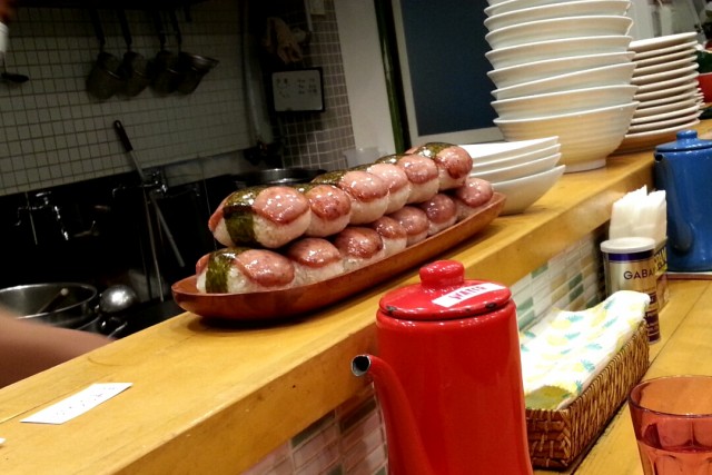 ピリ辛まぜSOBAと迷った挙句、塩SOBAスパムセット980円の食券を購入。