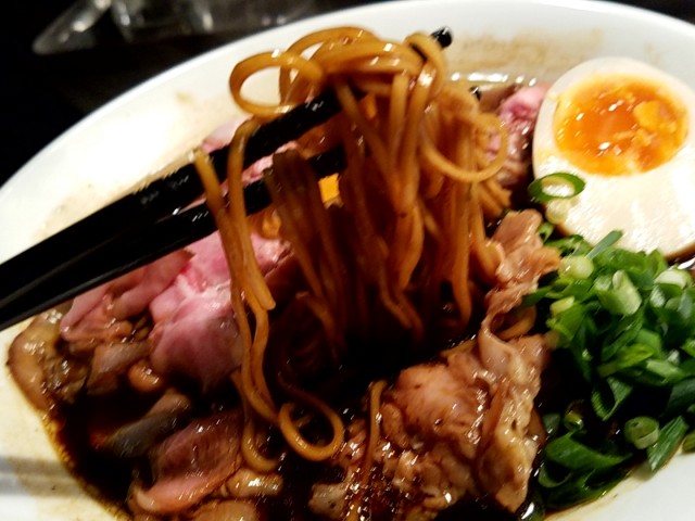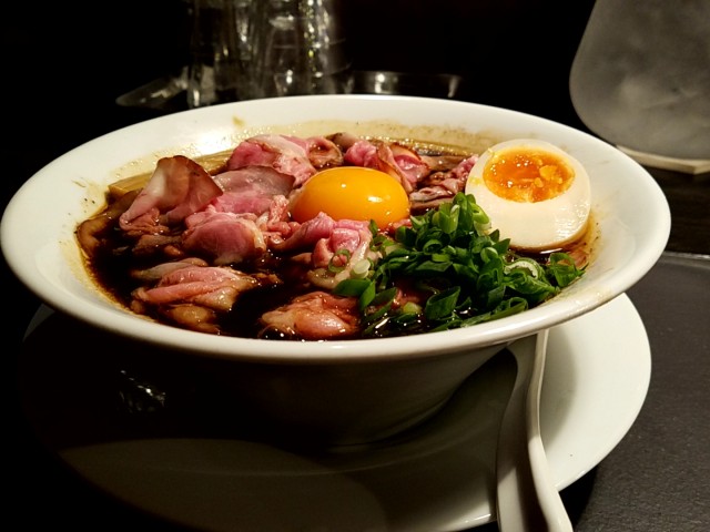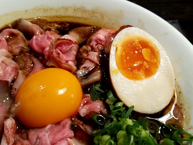 ①ブラック肉玉中華そば900円(味玉ハーフサービス)