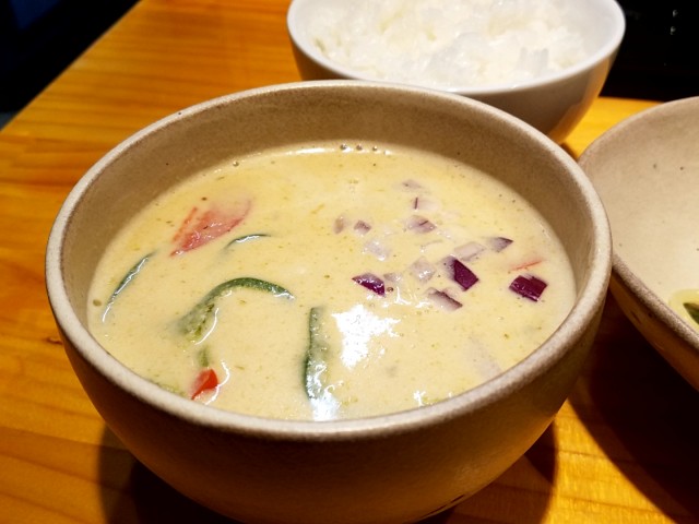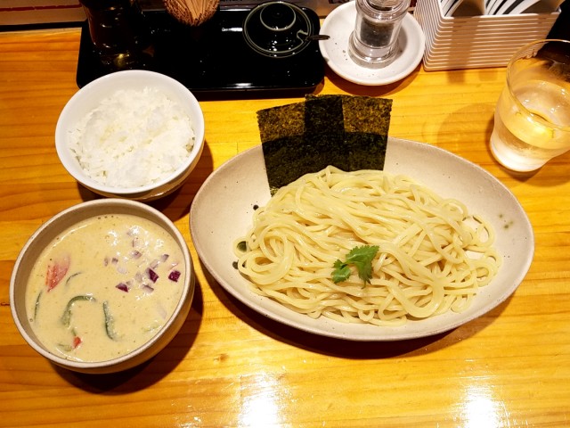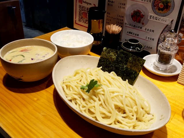 ①グリーンカレーつけそば中盛850円