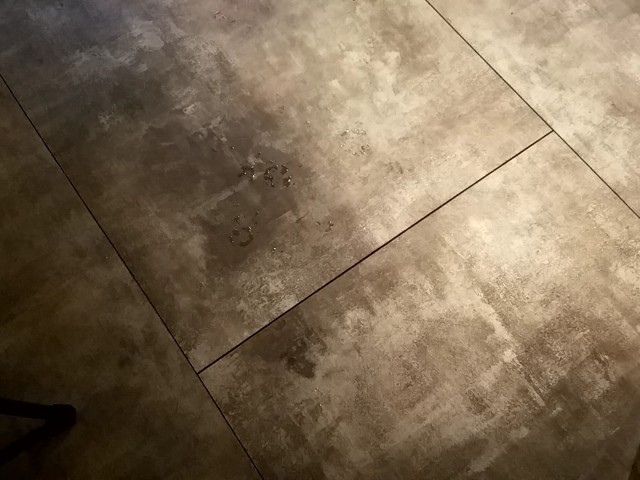 テーブルは、提供された器周辺(テーブル拭きでふき取るほどの量)、そして地面まで。