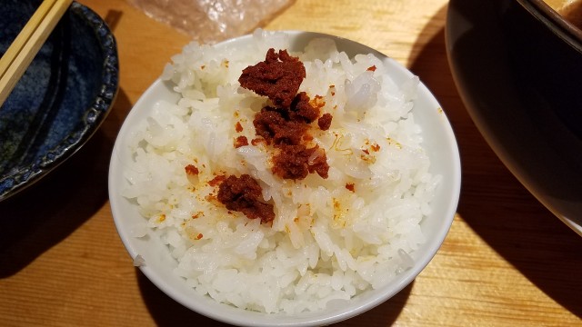 スタッフの1人が、私が辛味噌をライスにまぶして食べることをご存知で、トッピングの自家製辛味噌をわざわざ別皿に用意してくれた。