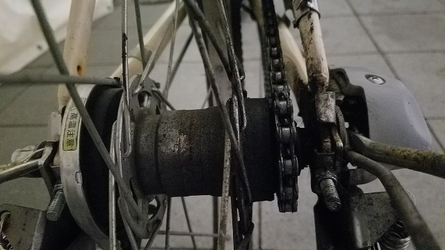 まず、チェーン外れとギアが入らない原因について、自転車屋が言うには、後輪がグラグラしているからだそうな(ホイール寿命)。走行中にチェーンがカバーと接触してカラカラ異音がするのもホイールの不具合に起因していた。チェーンの緩みをなくし、ホイールと本体を締め直したところで、ホイールを交換しなければ、数日で元の状態に戻ってしまう。