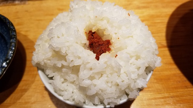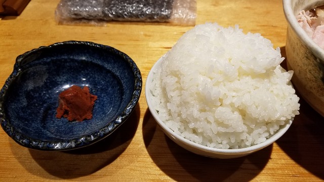 「焼きあご塩らー麺800円」の食券を購入してお店に入ると、いつもよくしてくれる日諸ちゃんの後任スタッフが「辛味噌は残っているので、在庫切れするまではサービス提供します」と声をかけてくれた。