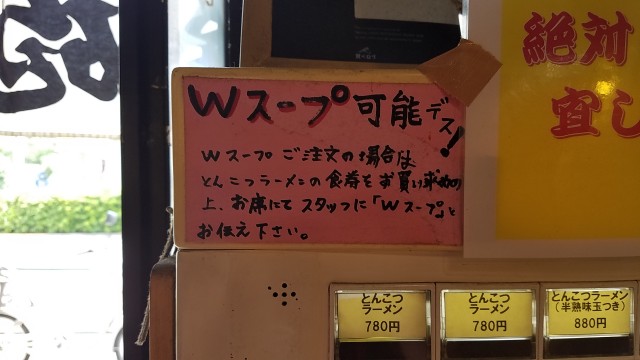 Wスープ780円(標準麺・麺硬め・ネギ増し)