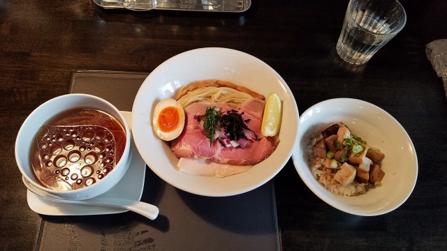 限定1ボタンは別メニューだが、限定1の食券を購入し、食券を渡す際「冷やし煮干しつけめん下さい」といえばよい。