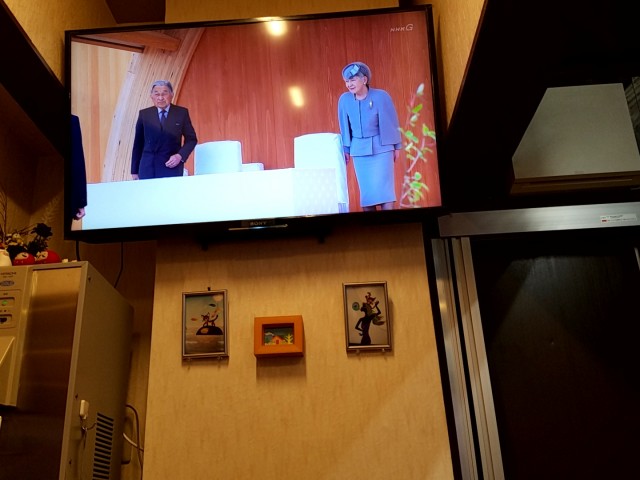 天皇皇后両陛下が南相馬の植樹祭に出席しているTV中継を、店主が厨房から身を乗り出して観入っていた。