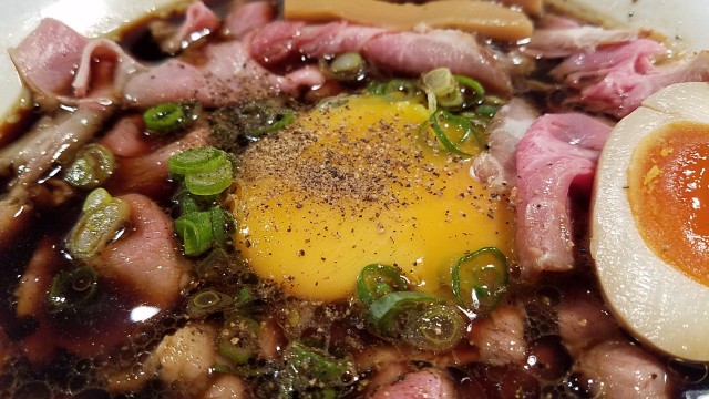 今夜は、ブラック肉玉中華そば(限定B2)・赤味噌らぁめん(Twitterフォロワー限定)、どっちの限定にしようか迷った。