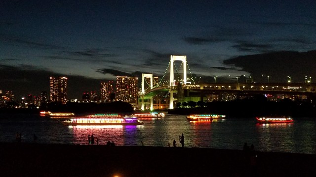 今日は、空が澄んでいて、レインボーブリッジ、屋形船、高層ビル群が一際綺麗だ。