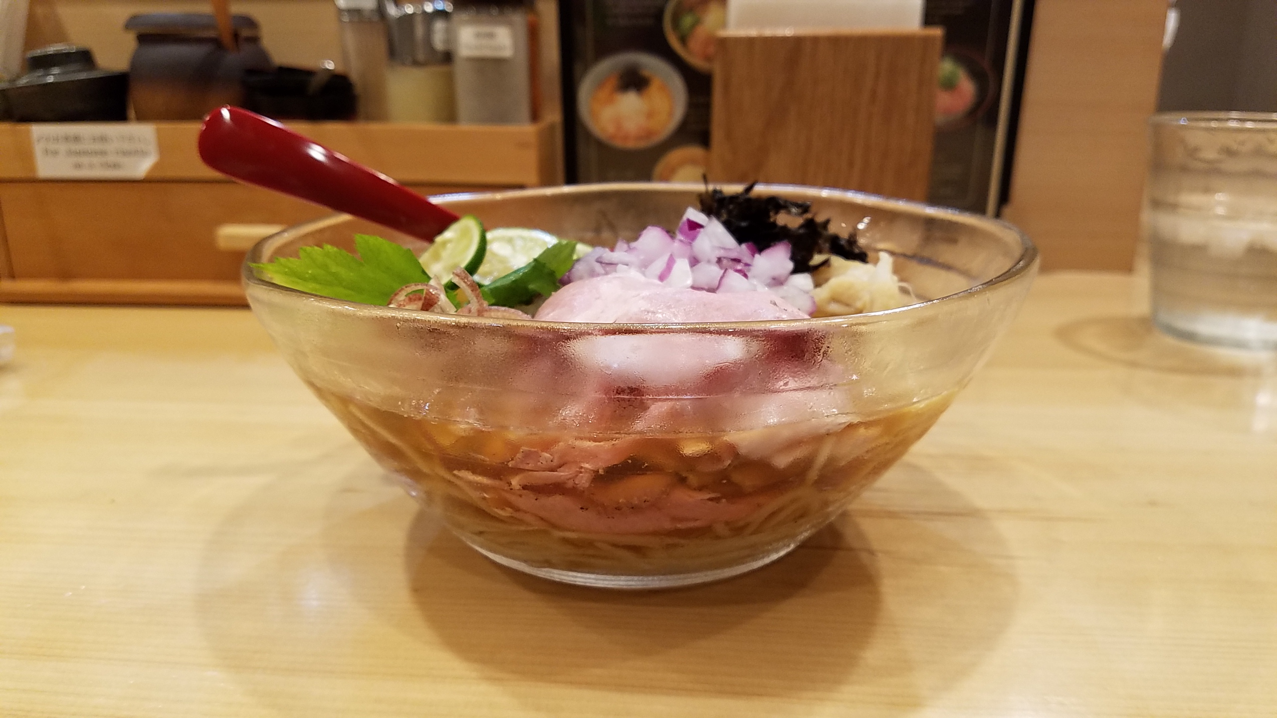 【焼きあご塩らー麺たかはし 銀座店】第20食 銀座店の日諸チーフ創作麺”秋刀魚と鮪の冷やしそば”(夏季限定) 2018/07/03