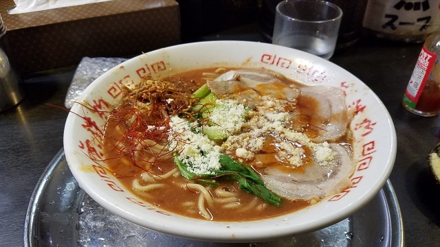 ※赤とんこつの場合は、ねぎの代わりにトマトとくずチャーシュー+標準と細麺がチョイス可能