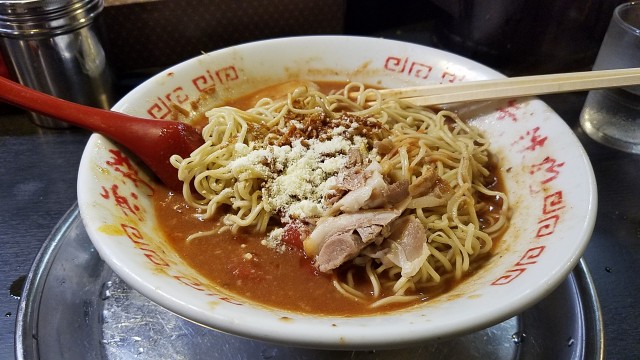 赤とんこつらーめん 850円・・・トマト(標準・ただし替玉のみ標準と細麺から選択)