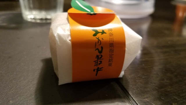 7月6日訪問時にカネキッチンさんから頂戴した湯河原研修のおみやげ「みかん最中」