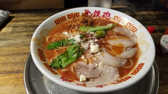 赤とんこつらーめん 850円・・・トマト(標準・ただし替玉のみ標準と細麺から選択)