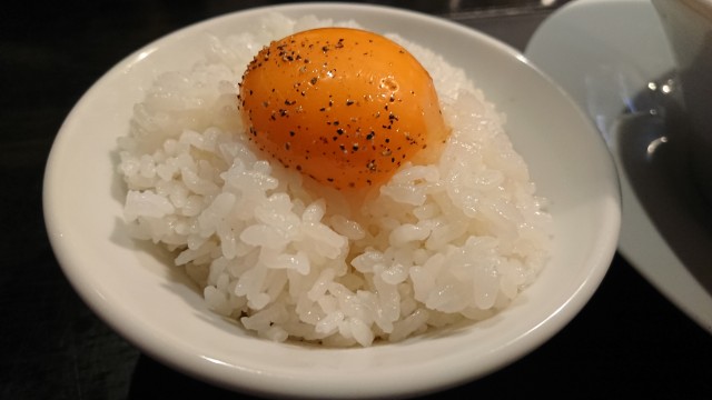 卵黄をくり抜いてブラック中華そばの誕生です。
