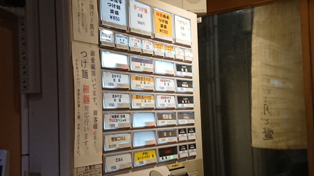 「辛つけ麺(大盛)900円」の食券を購入し、カウンター入口の席に座った。