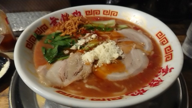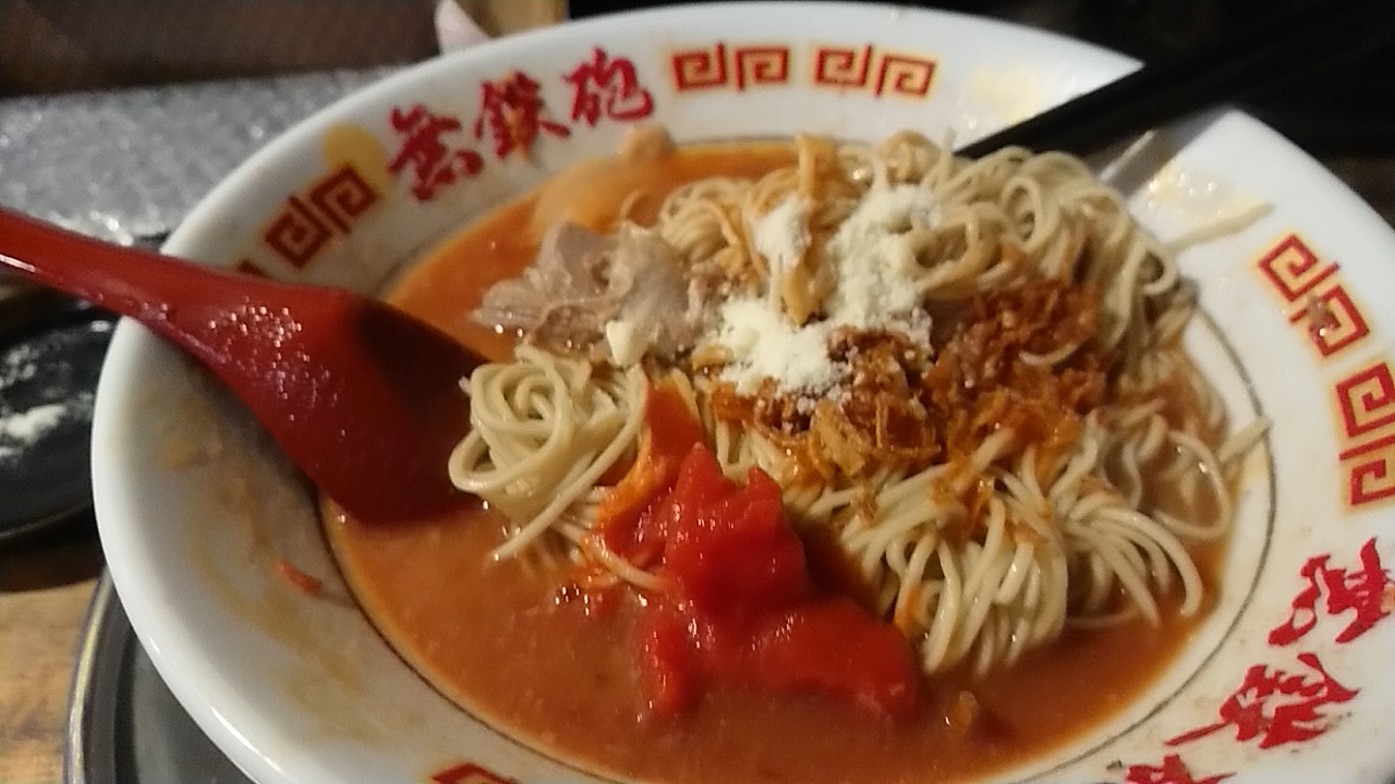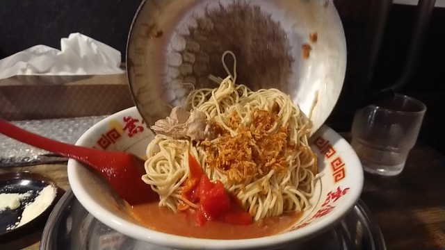赤とんこつらーめん 850円・・・トマト(標準・ただし替玉のみ標準と細麺から選択)