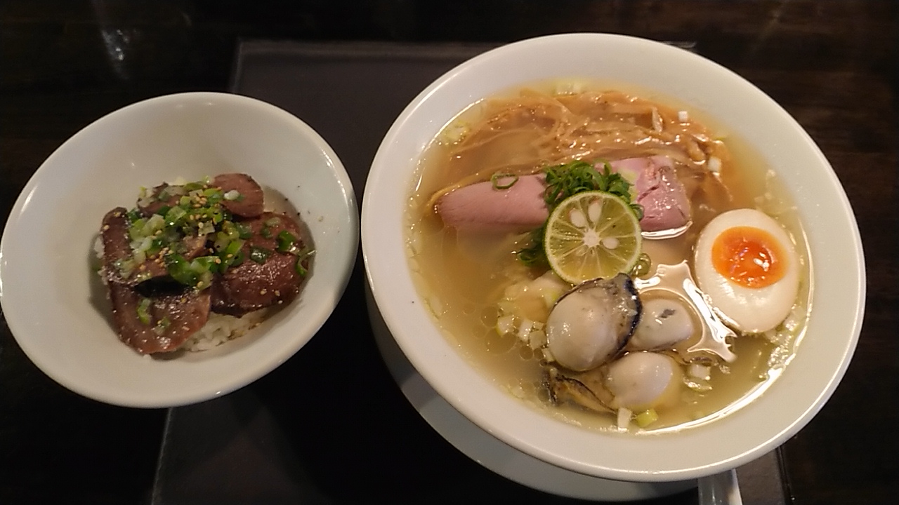 【KaneKitchen Noodles】第191食 ゲリラ限定「牡蠣塩らぁめん」+ゲリラ提供「タン塩ネギ丼」 2018/11/13
