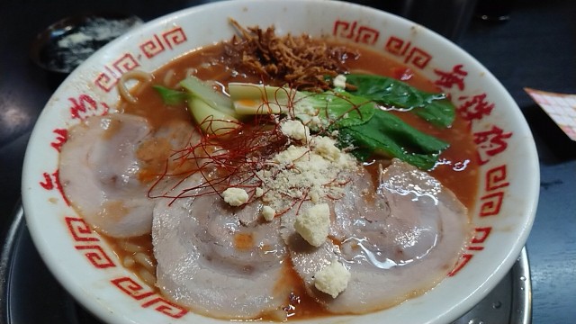 ※赤とんこつの場合は、ねぎの代わりにトマトとくずチャーシュー+標準と細麺がチョイス可能