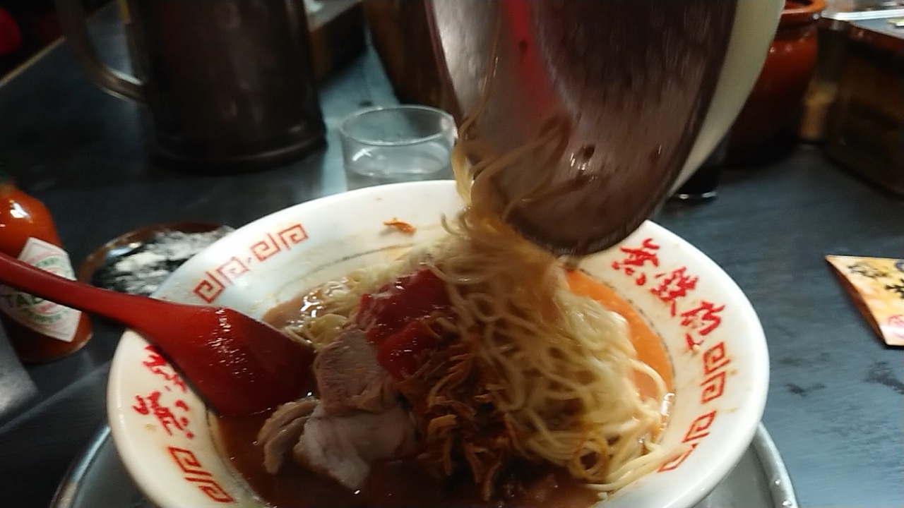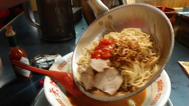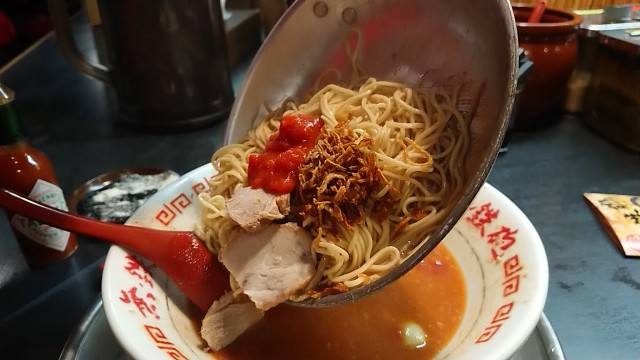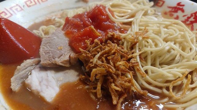 赤とんこつらーめん 850円・・・トマト(標準・ただし替玉のみ標準と細麺から選択)