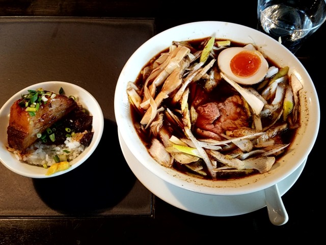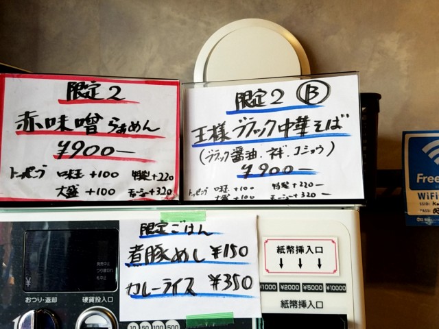 ①王様ブラック中華そば900円・・・味玉ハーフサービス