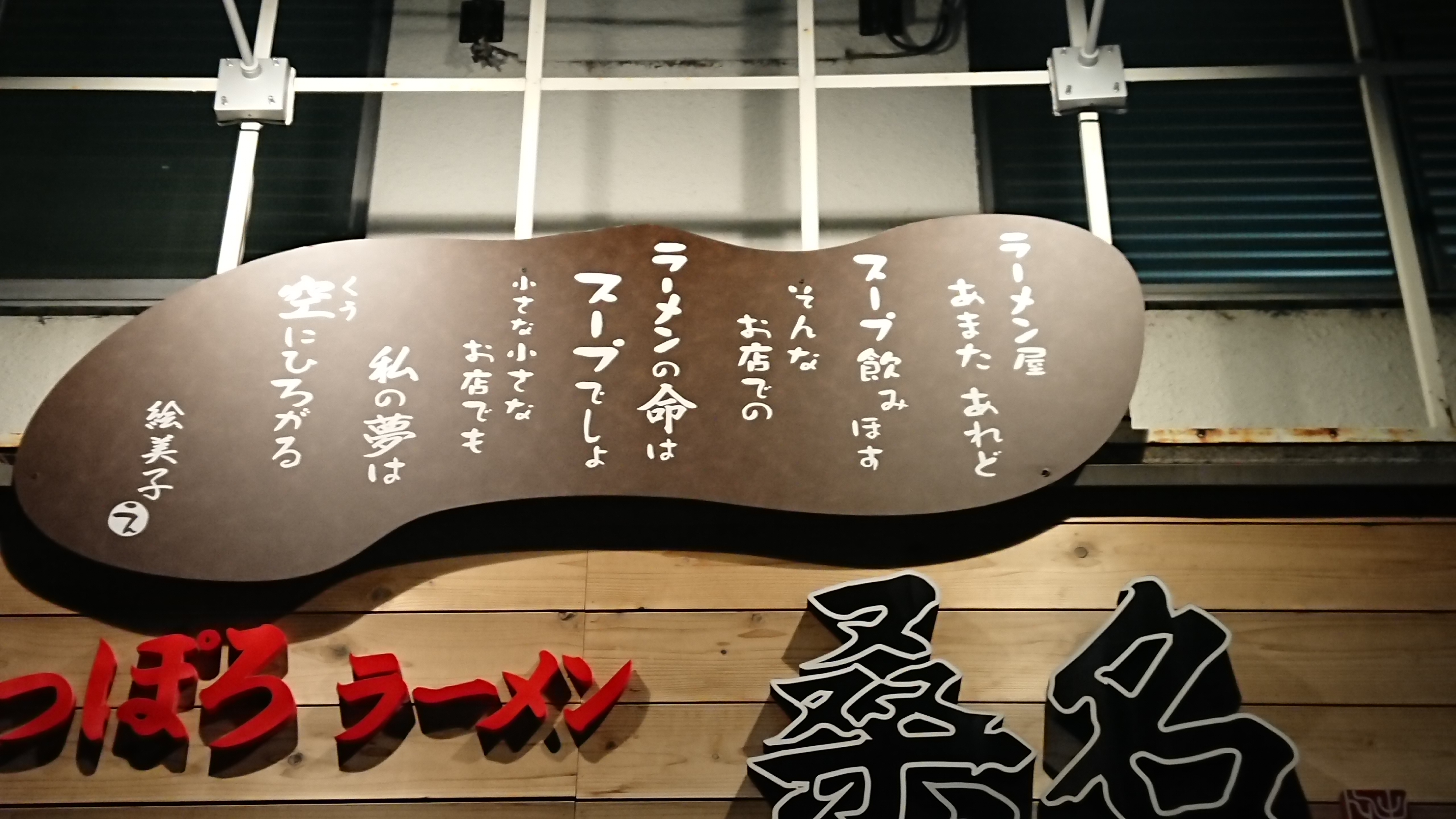「ラーメン屋あまたあれど『 スープ飲みほす』そんなお店でのラーメンの命は”スープ”でしょ 小さな小さなお店でも私の夢は空にひろがる 絵美子」