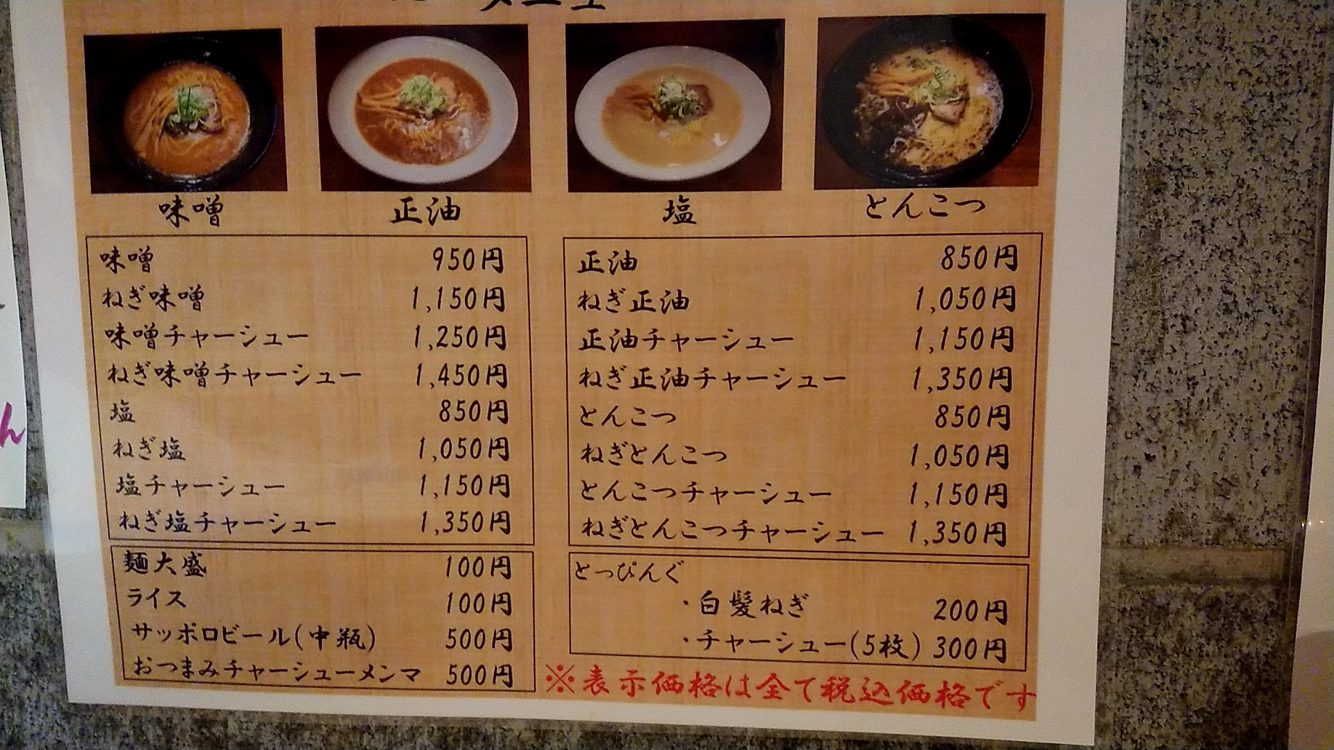 味噌、塩、正油、とんこつが揃う。