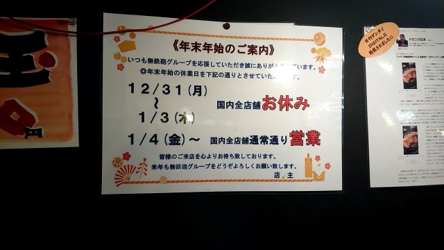 12/31~1/3までお休みになります。