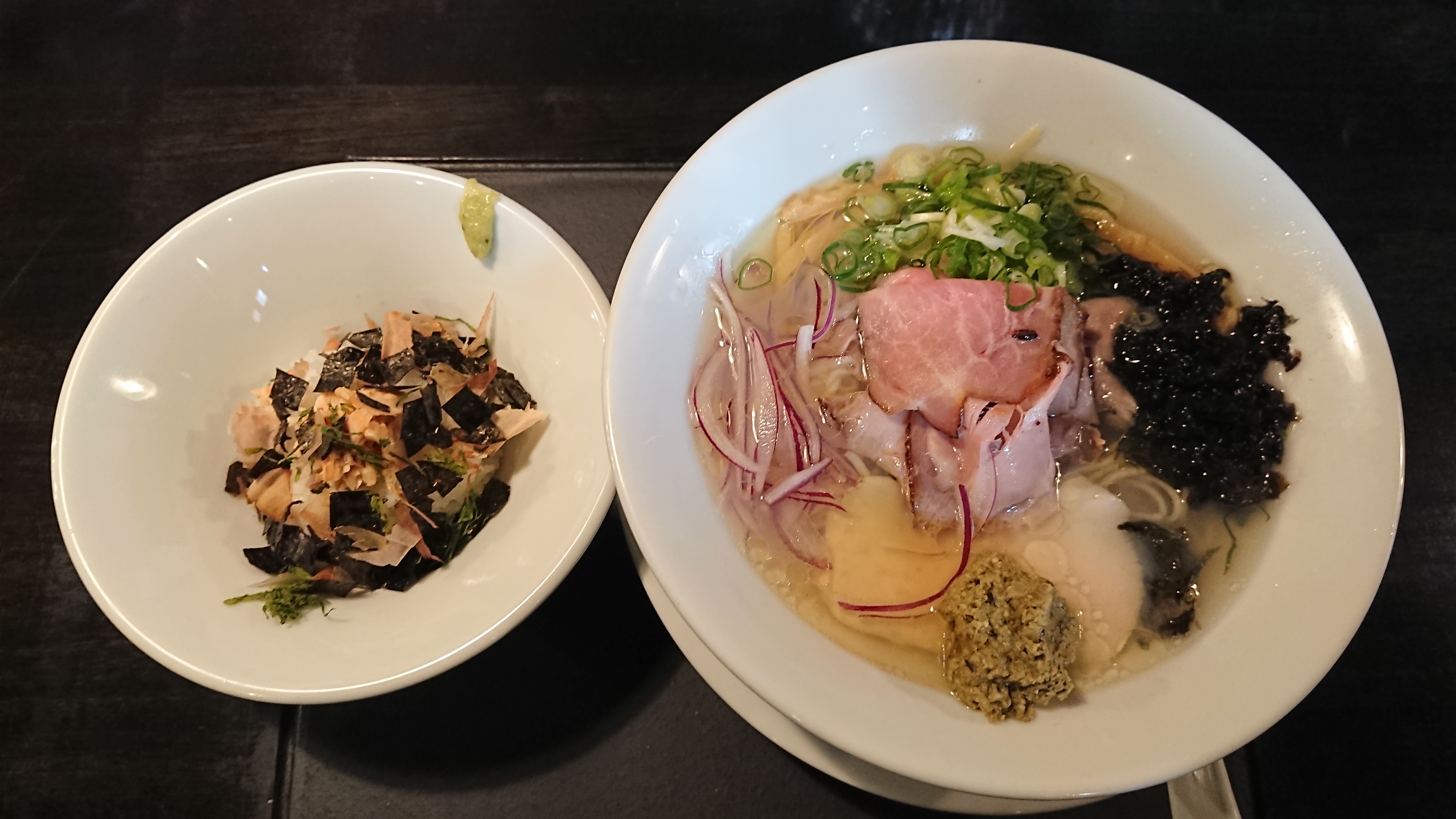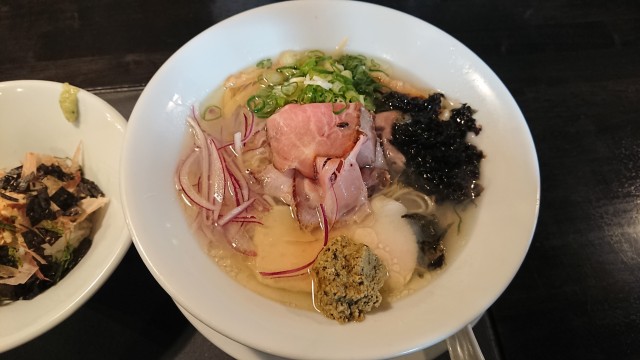 潮そば~磯の香り~(スープ鮭茶漬けセット)1200円