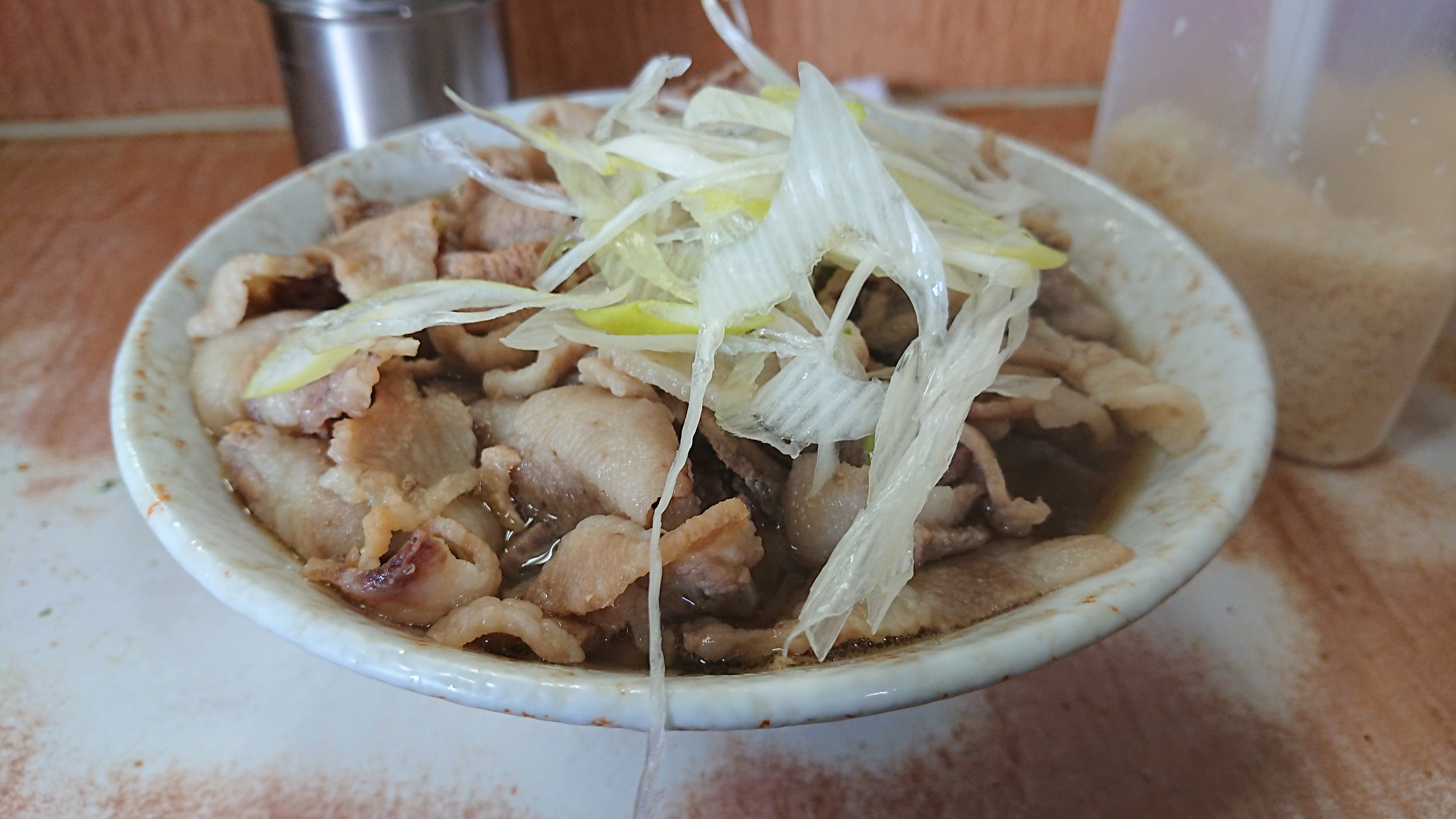 揚げ玉と七味唐辛子投入