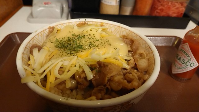 チーズ牛丼にタバスコぶっかけ! pic.twitter.com/AbUohbwyX7— 暴れん坊将軍徳川吉宗(徳田新之助の『自転車で寄り道の旅』) (@ramenfirst_mtmt) 2019年3月22日
