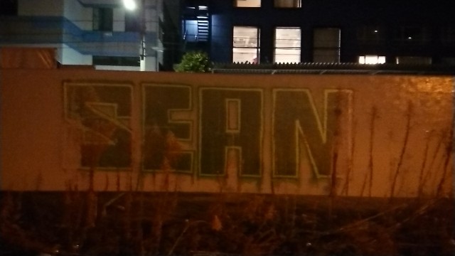 壁面にペイントした日の深夜にスプレーで落書きされてしまったようだ。