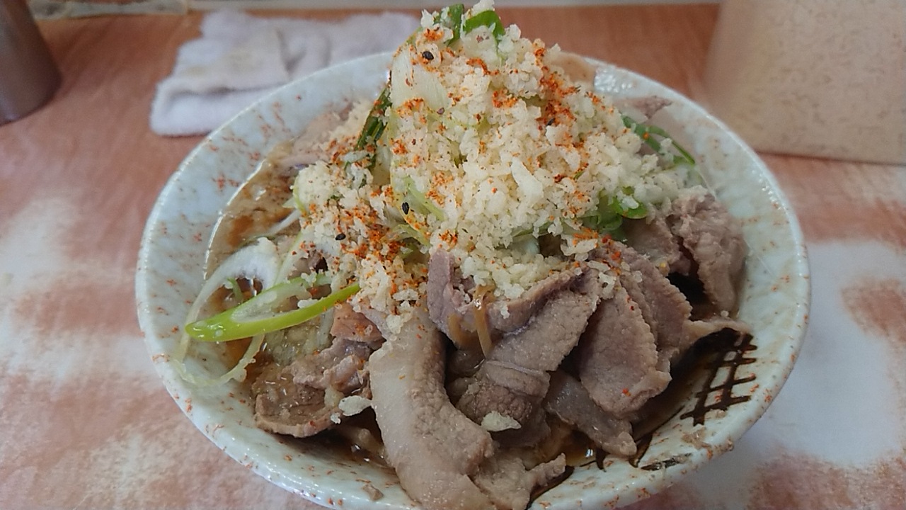 揚げ玉と七味唐辛子投入