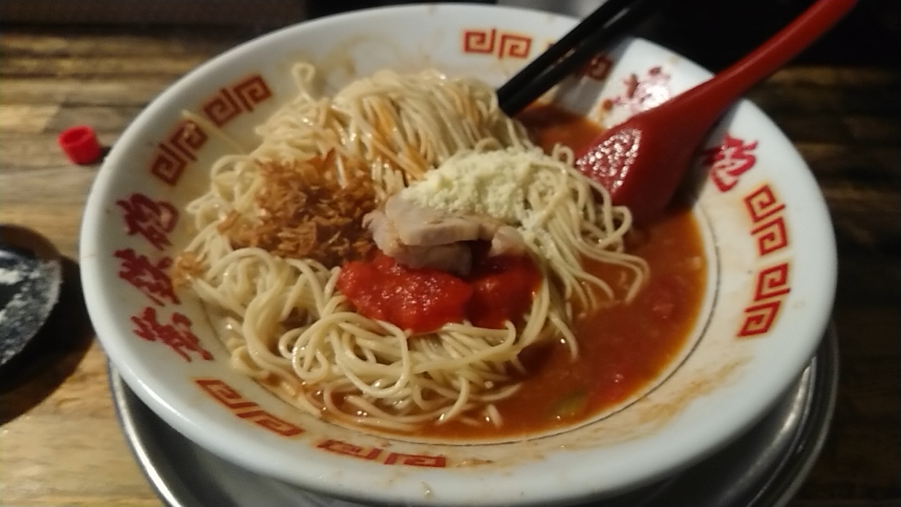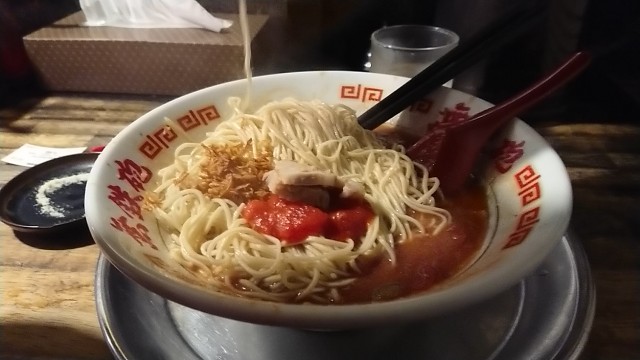 赤とんこつらーめん 850円・・・トマト(標準・ただし替玉のみ標準と細麺から選択)