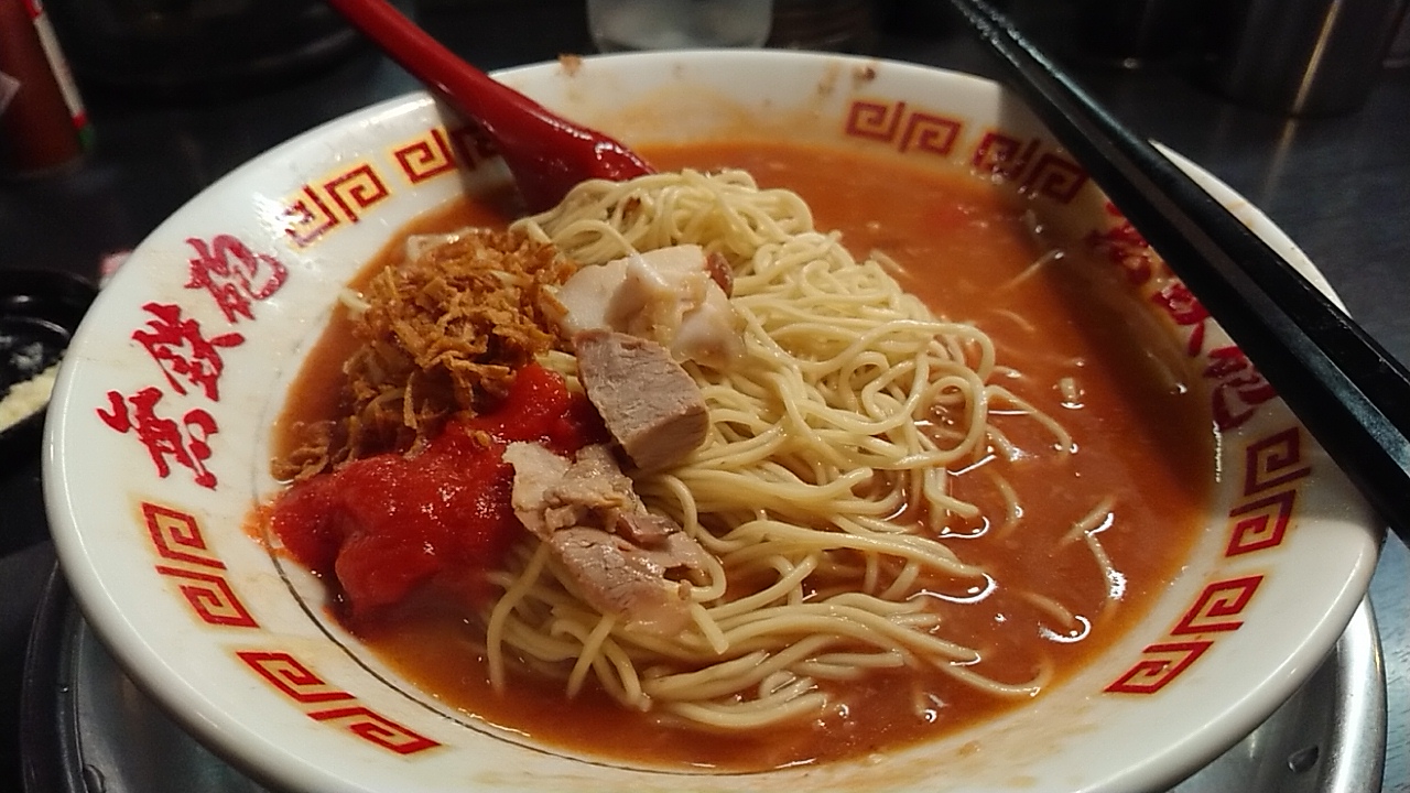 赤とんこつらーめん 850円・・・トマト(標準・ただし替玉のみ標準と細麺から選択)