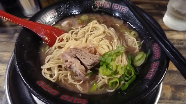 ※赤とんこつの場合は、ねぎの代わりにトマトとくずチャーシュー+標準と細麺がチョイス可能