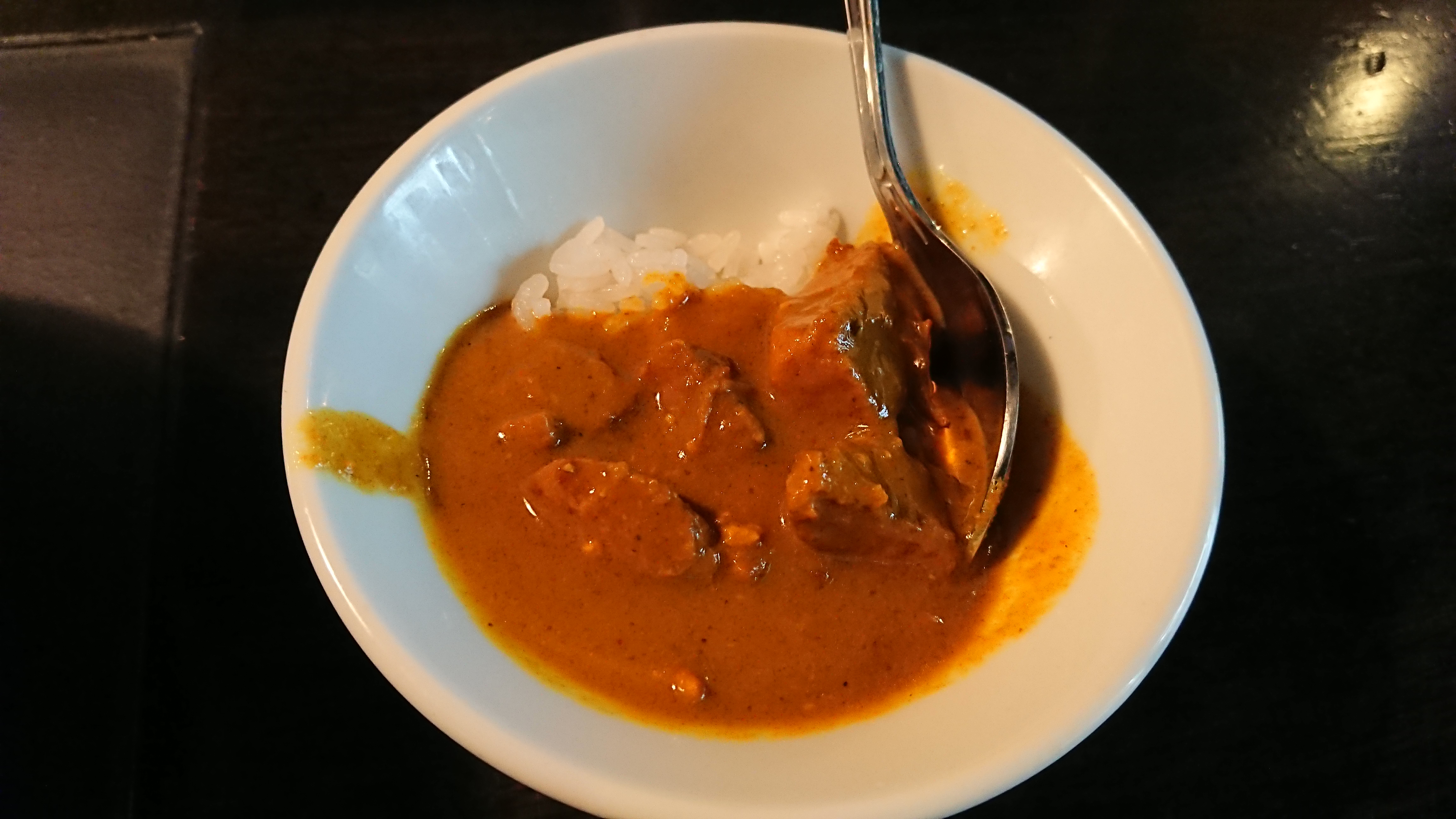 味の濃・薄のコントラストを楽しんでいると、大将がスパイスカレーを持ってきた。