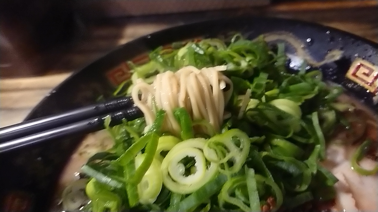※赤とんこつの場合は、ねぎの代わりにトマトとくずチャーシュー+標準と細麺がチョイス可能