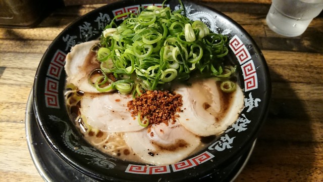 ※赤とんこつの場合は、ねぎの代わりにトマトとくずチャーシュー+標準と細麺がチョイス可能
