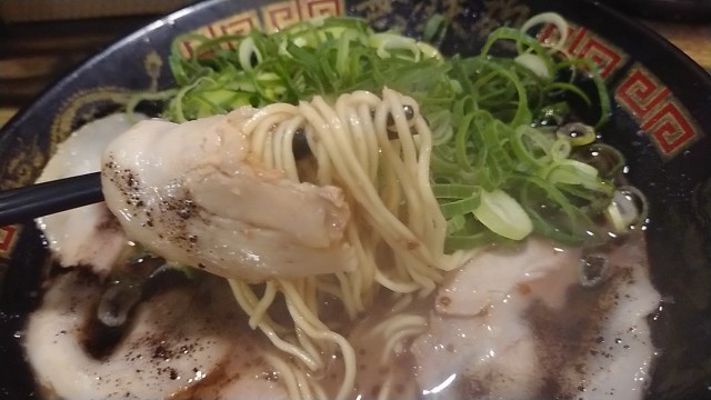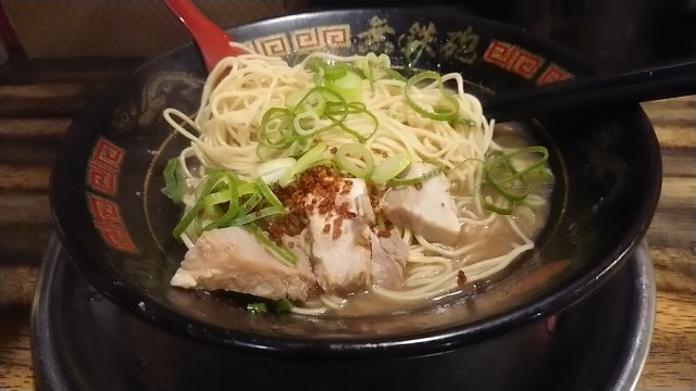 ※赤とんこつの場合は、ねぎの代わりにトマトとくずチャーシュー+標準と細麺がチョイス可能