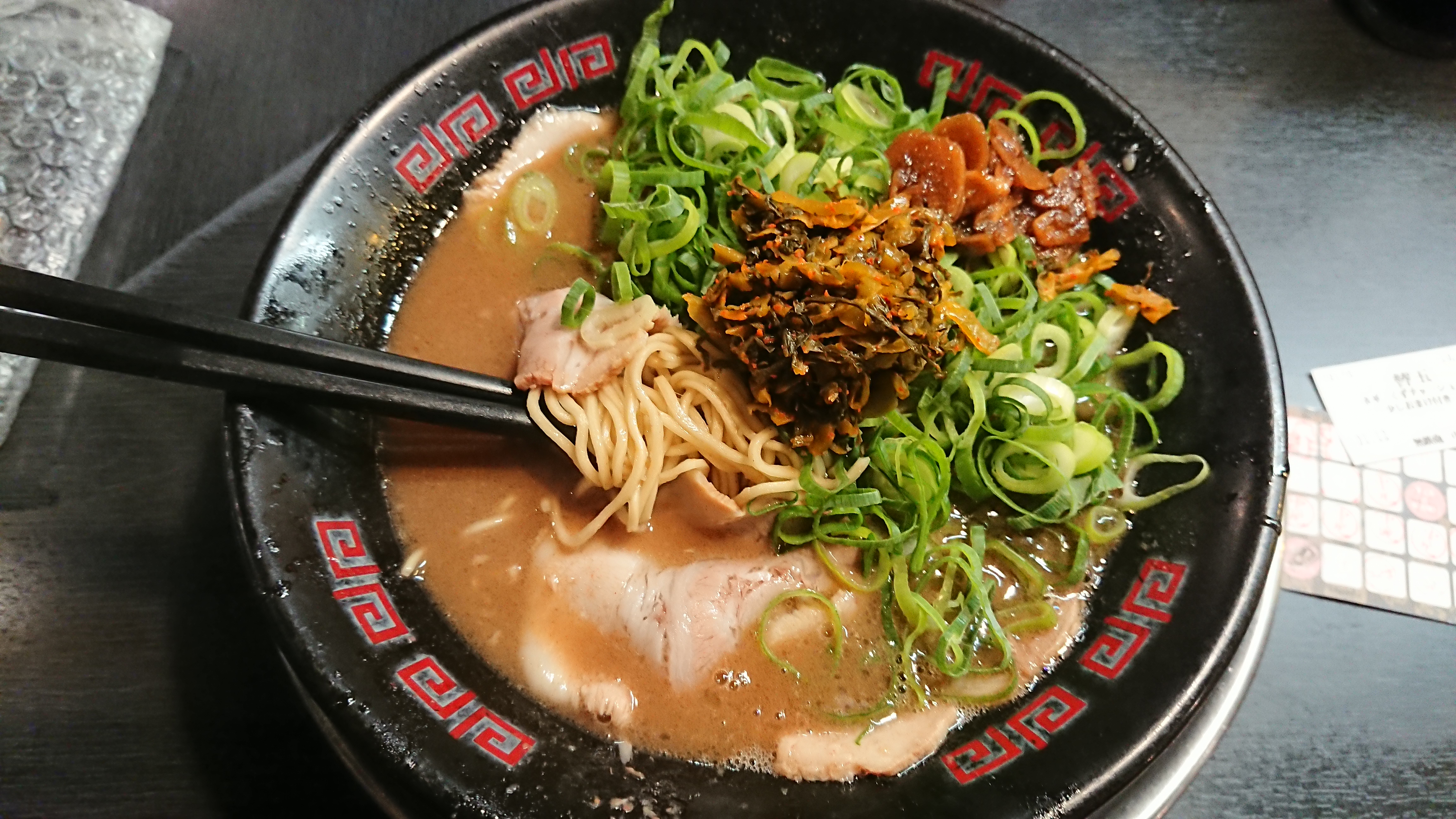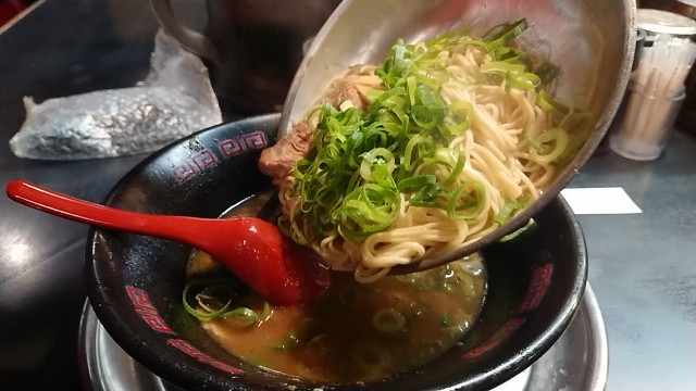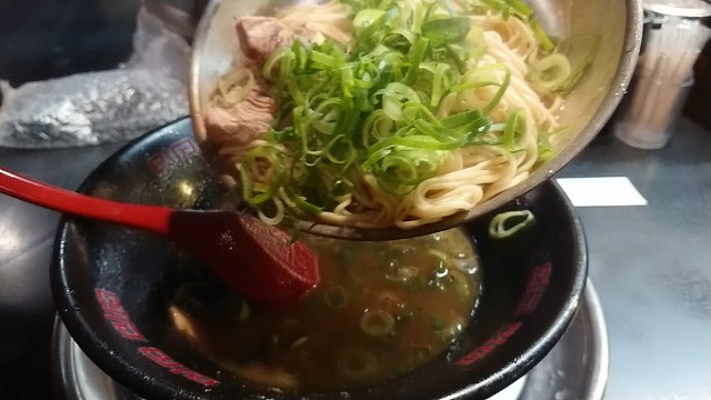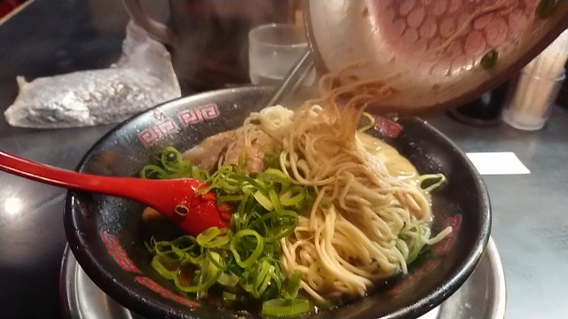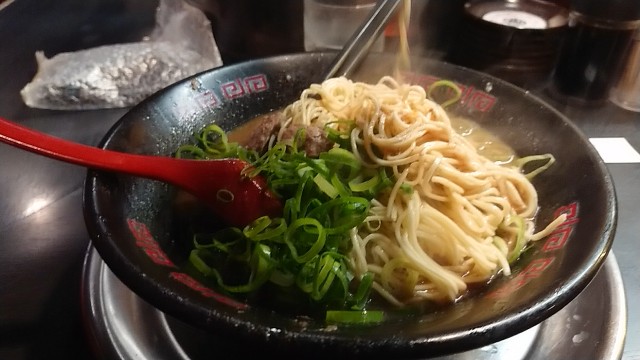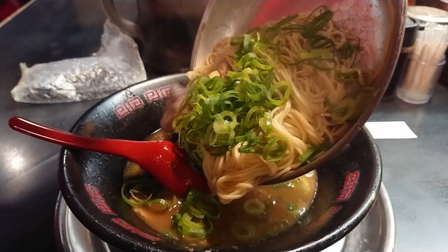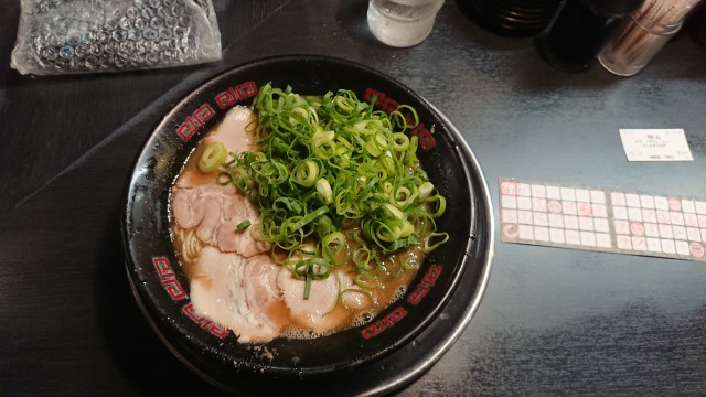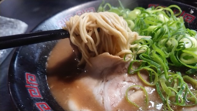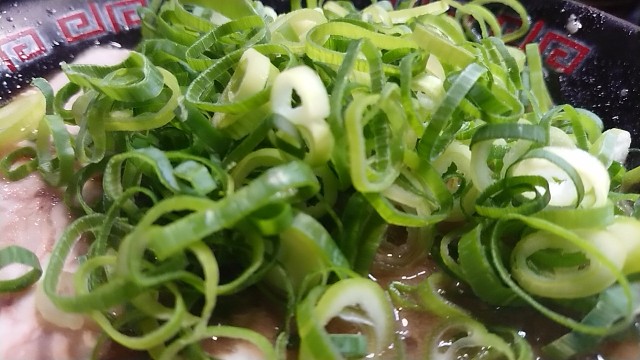 ※赤とんこつの場合は、ねぎの代わりにトマトとくずチャーシュー+標準と細麺がチョイス可能