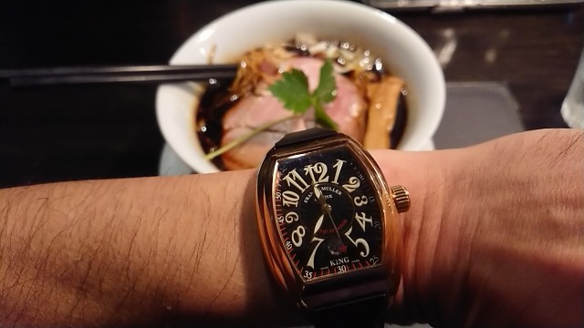 黒醤油らぁめん with コンキスタドール・キング(ピンクゴールドのケース)。