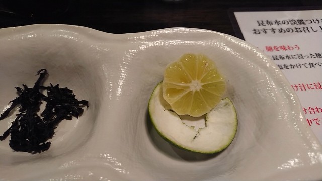 ⑤酢橘は皮を剥き、終盤にまるごと食べる(甘酸っぱいので、その後のつけ汁が旨味を増す)