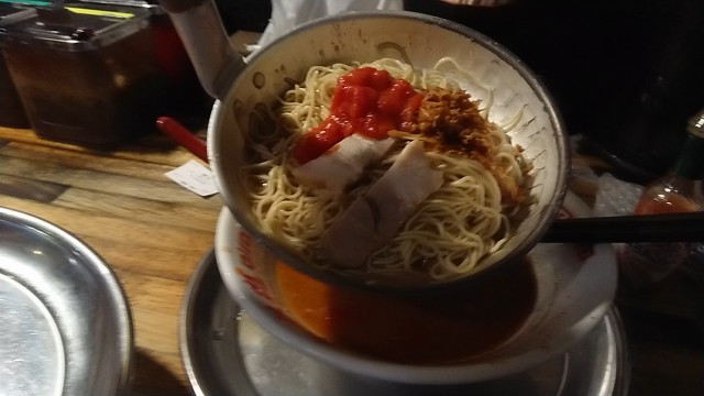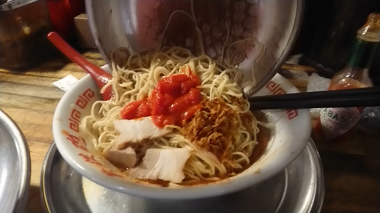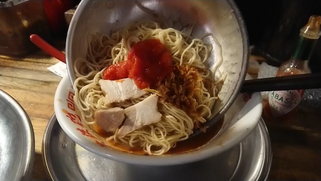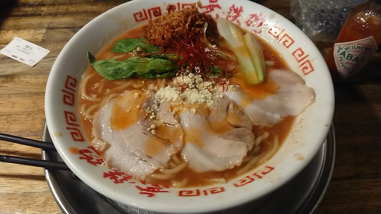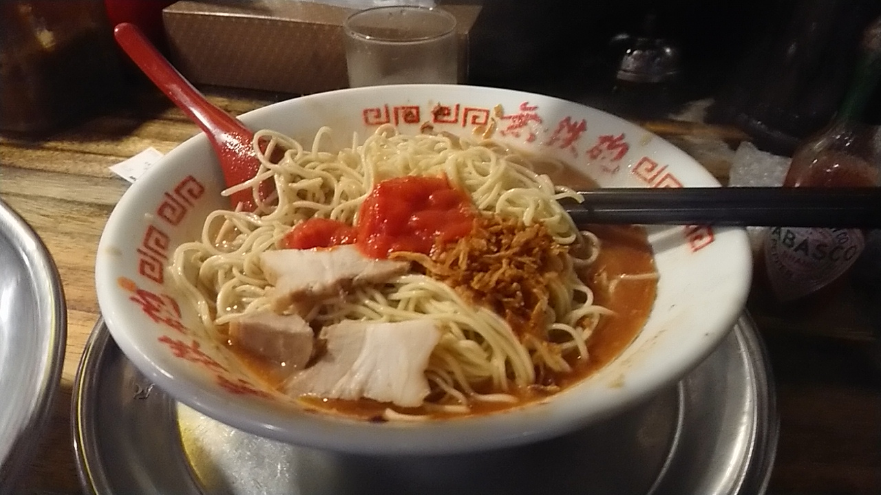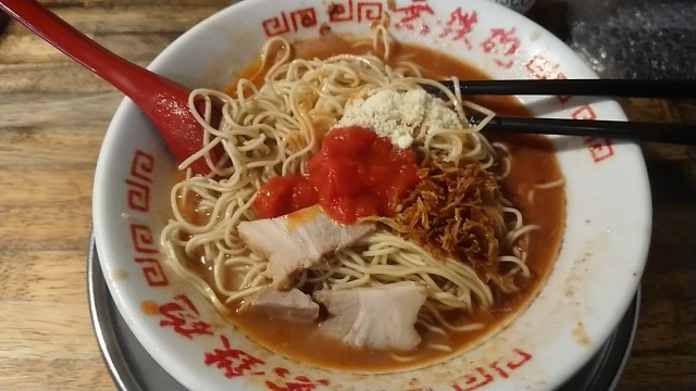 赤とんこつらーめん 850円・・・トマト(標準・ただし替玉のみ標準と細麺から選択)