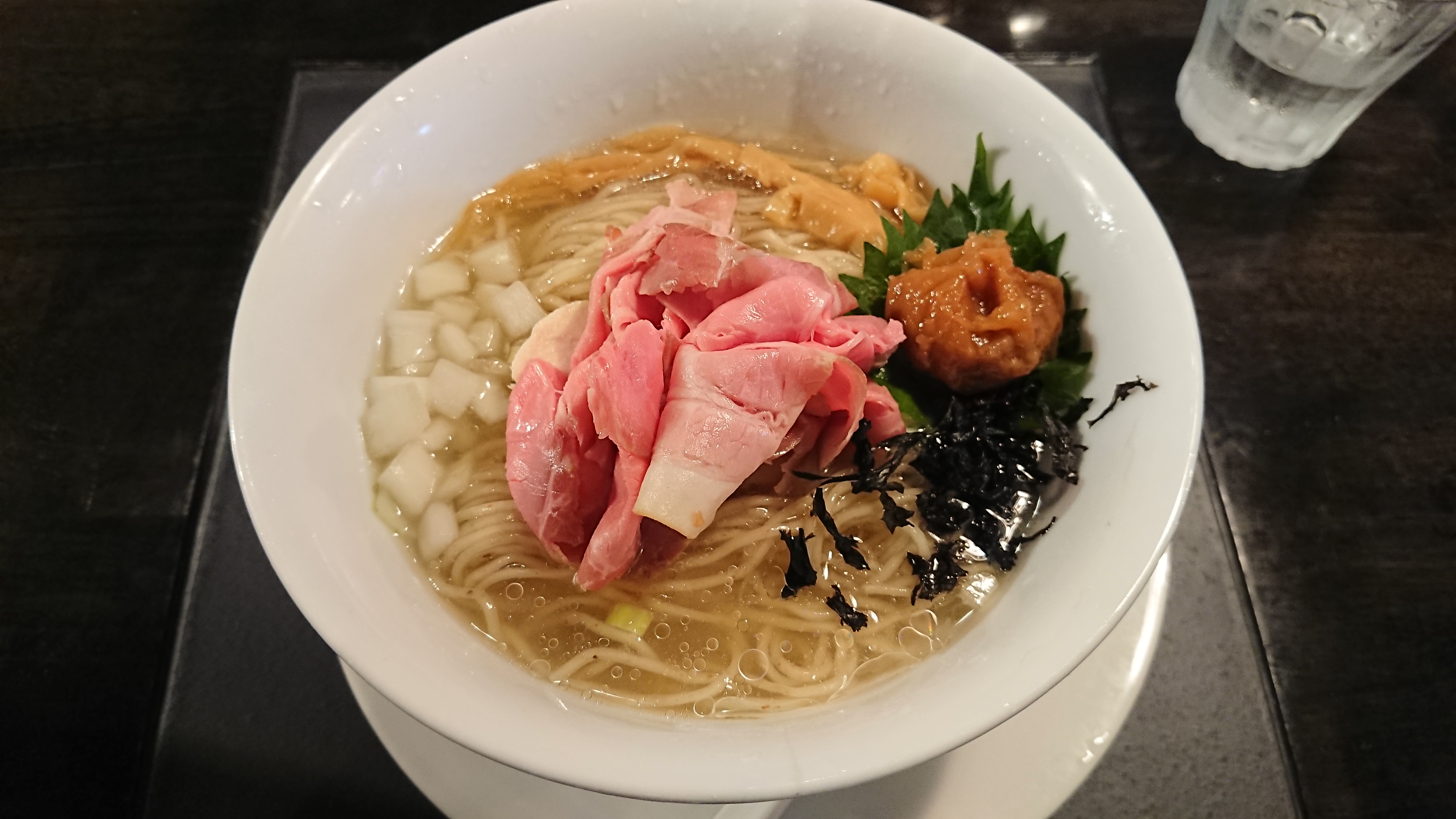 カネキッチンヌードルさんで紀州南高梅冷やし塩らぁめん(大盛ご厚意)。こう暑くては生きていけないので、クールダウンと塩分補給を兼ねて今日はこちら。あたりの柔らかい塩気と適度なとろみのスープでホッとしますね。酸味と甘さを含んだ梅をスープに溶きながらスープを完飲。ごちそうさまでした。 pic.twitter.com/l7flG3g9MH