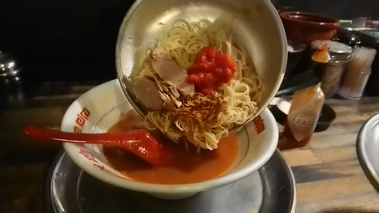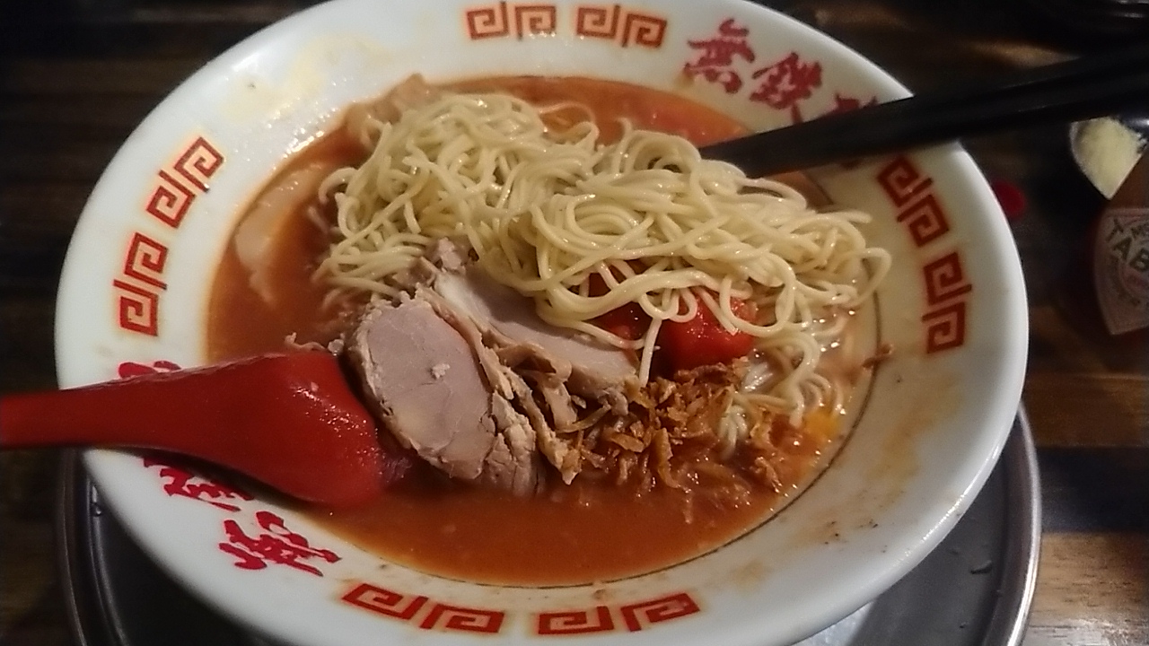 赤とんこつらーめん 850円・・・トマト(標準・ただし替玉のみ標準と細麺から選択)